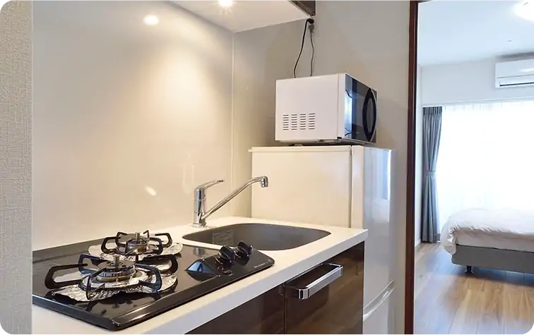 すべてのお部屋にキッチン・冷蔵庫を完備し、自炊ができる環境をご用意。母国の食文化を大切にした食事が可能なだけでなく、アレルギーや食の制限にも対応しやすいのが魅力です。
